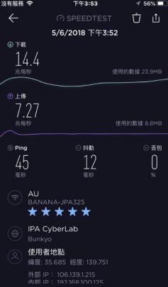 速度正常, 而且, 2018年5月有人回報係3日裡面用左9GB 都無瑣速. 加分.