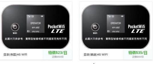 呢間我用過, 佢有2個plan, 我當時用既係佢個郊區4G Wifi ($35蚊一日, 2017年1月). 另一個plan 係市區4G wifi. ($23蚊一日, 2017年1月). 佢地成日都有promo 會平. 不過要自己睇facebook 搵.