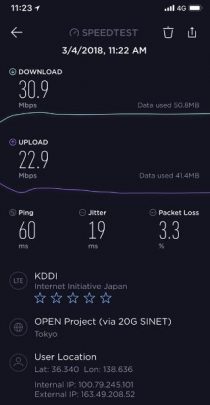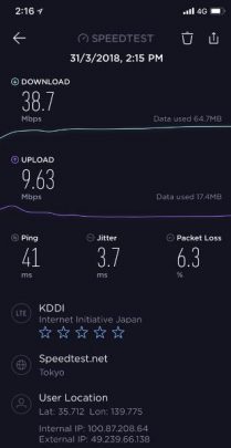 因為做緊promo, 我join 個陣係每個月送多4GB data. 即係一個月7GB 既data. 而且, 你個個月用唔晒既data, 係可以帶落下個月用. 最多儲2個月data, 即係14GB data. 你攞住14Gb data 旅行係真係可以用番呢張卡上網. 我買既係Type A 既卡, 係行KDDI AU network. 覆蓋係同Docomo 一樣咁好, 即係北海道同沖繩用都無問題. 呢d “格安sim”, 即係廉價sim 卡, 係有一個死穴, 就係每日12pm – 1pm 係必定會慢. 速度會跌落1mps – 2.5mbps 不等. 但係其它時間, 我測試既時候係好ok.