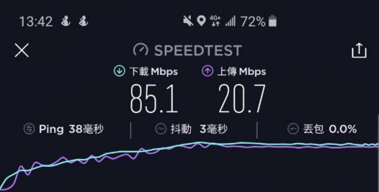 因為算係相對地新既充值式sim 卡, 所以唔係好多人用. 無人用就自然勁快既速度. 平均50Mbps!