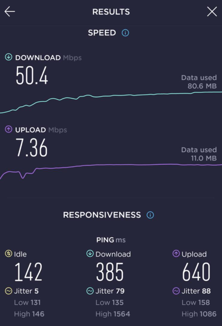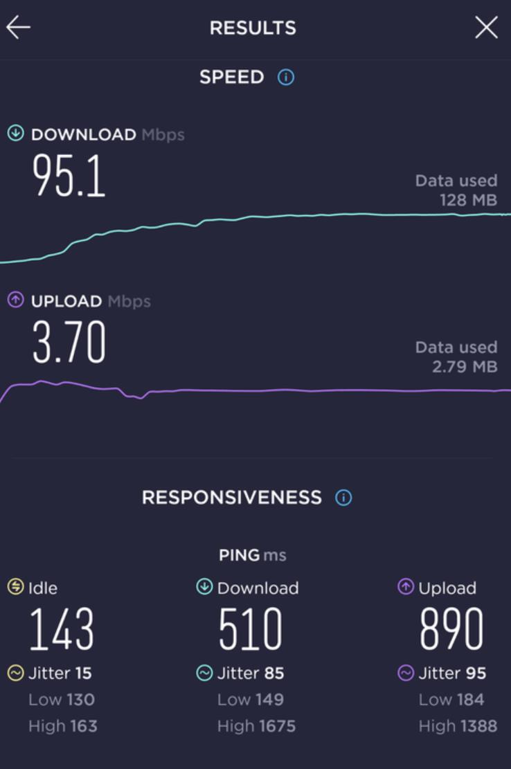 download速度好好, upload speed 就只叫合格. ping time 值略高, 屬於漫遊卡. 所以會影響手機反應.